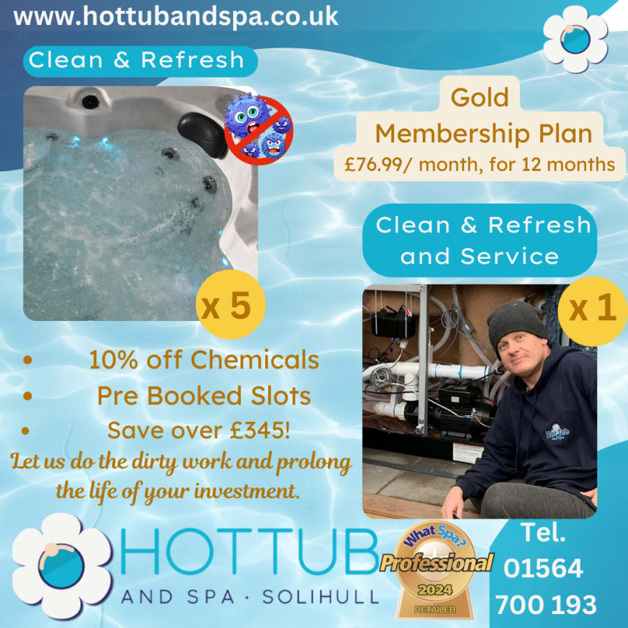 You pay £76.99 per month - six visits per year, and we will schedule a visit in every other month to either carry out a professional Clean and Refresh or a professional Clean and Refresh plus an Annual Service. This means that on the recommended advice that you change the water every three - four months, you will not need to do this yourself, but let us take care of it and indeed you are going above and beyond the recommended advice. This plan is particularly suited to busy families and or where the hot tub is enjoyed by lots frequently. You also have the benefit of professional eyes looking over your hot tub and we can pick up on any potential risks of problems before they arise. This is a saving of over £350 on our regular off plan prices, making it excellent value.